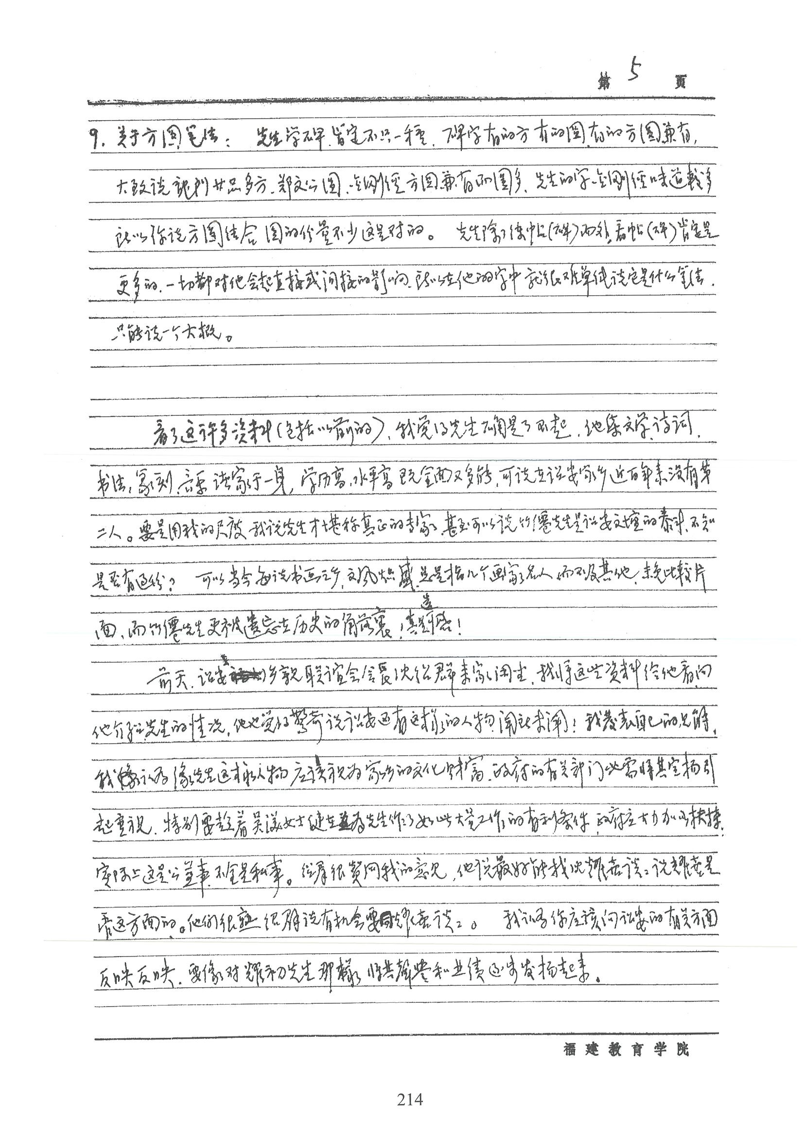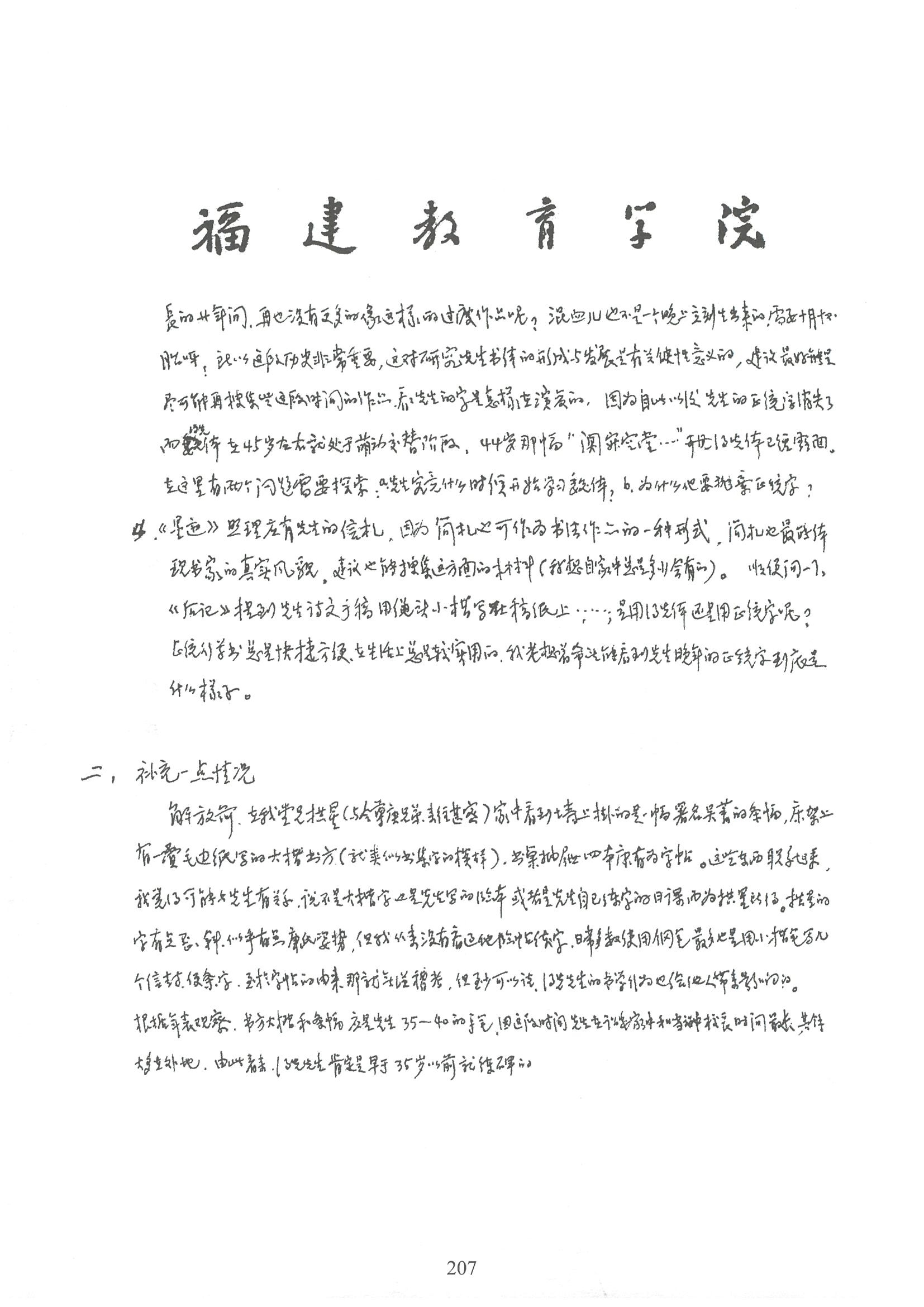 1、 关于小字文稿:若确认为先生北师大文稿,那就是32-34岁作品的字迹。作为长篇文稿字迹,最能真实地反映作者的书法面目及其气质和水平。文稿看来是乎是文随思涌,笔随文动一气呵成(一笔数字牵丝连带多处可见),因而通篇气势连贯,点画流畅,有如行云流水生动自然。从字的用笔和结构看有力度合规范,写得也比那些屏风来得飘逸。字虽看不出学的是什么字体,但却有一种自成体势,清秀和谐的格调,像这样的字,若非一定的工夫是不能达到的。而总体的说,这是属于纯正的正统字,属二王一路的行草体。