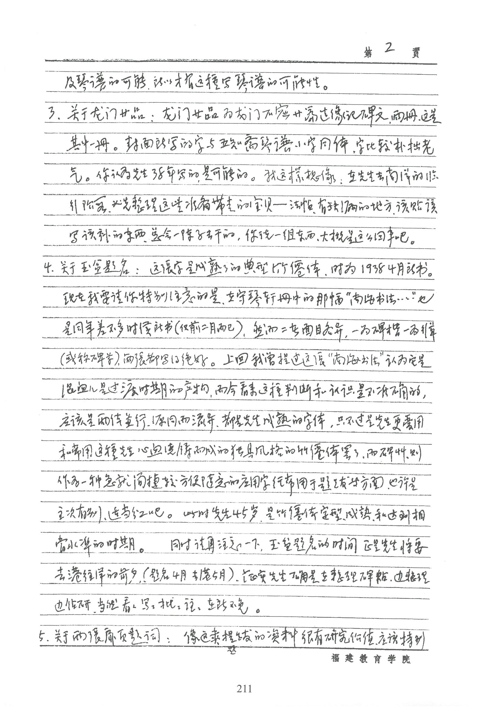 3、关于龙门廿品: 龙门廿品为龙门石窟廿篇造像记碑文,两册,这是其中一册。封面所写的字与五知斋琴谱小字同体,字比较朴拙老气。你认为先生38年写的,是可能的。我这样想像:在先生去南洋的临行阶段,必先整理这些准备带走的宝贝——法帖,有缺漏的地方,该贴该写该补的东西,总会一阵子去干的,你说一组东西,大概是这么回事吧。