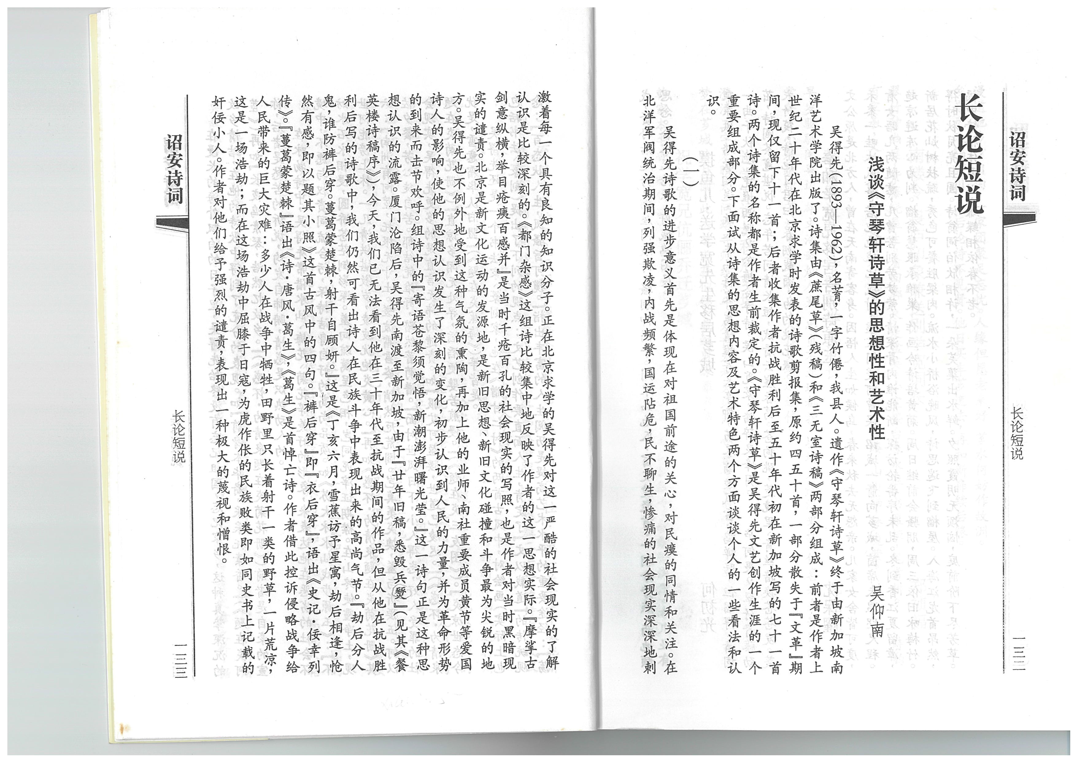 10/8/2001 《诏安诗词》第六集(第132页至第139页) 诏安县诗词学会出版 2002年 浅谈《守琴轩诗草》的思想性…... 详情>>